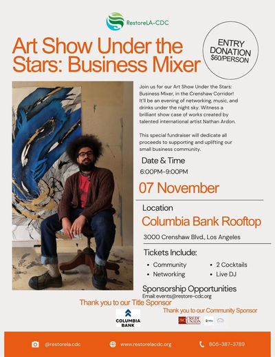 Join us for our Art Show Under the Stars: Business Mixer, in the Crenshaw Corridor! It’ll be an evening of networking, music, and drinks under the night sky. Witness a brilliant show case of works created by talented international artist Nathan Ardon.